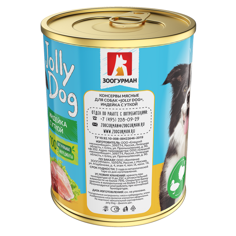 Консервы мясные для собак «Jolly Dog», Индейка с уткой, 350г